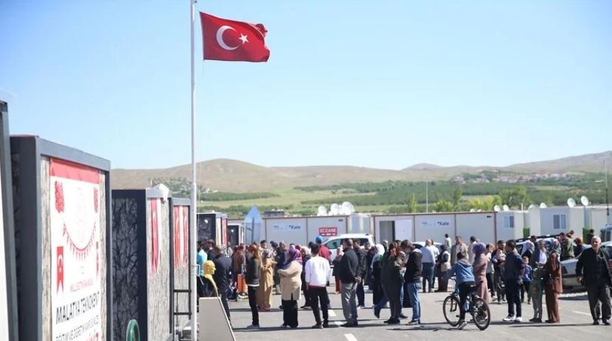 Des bureaux de vote ont été installés dans des logements préfabriqués dans les zones touchées par le tremblement de terre, alors que les électeurs sont venus nombreux dès le démarrage du vote.