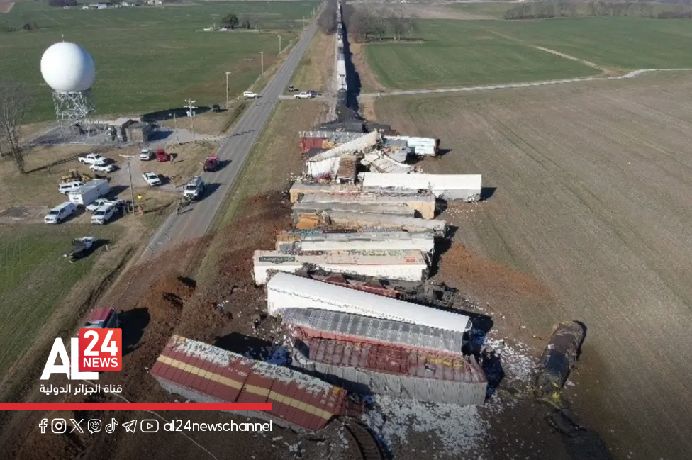 Selon la radio locale WEKT, quatre personnes se trouvaient à bord du train lors du déraillement. Des images aériennes du lieu montrent plusieurs wagons couchés sur le flanc et des marchandises répandues dans un champ aux alentours.