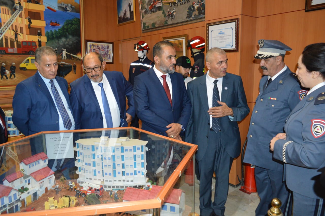La délégation a été accueillie par le représentant du Directeur Général de la Protection Civile, le colonel Khelifa Moulay, en compagnie du Directeur de la coopération au ministère de l’Intérieur, des Collectivités locales et de l’Aménagement du territoire, M. Kamel Kaïli.