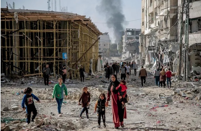 Et d’ajouter : Une année de guerre brutale a transformé la bande de Ghaza en une mer de décombres méconnaissable et un cimetière pour des dizaines de milliers de Palestiniens, dont un très grand nombre d’enfants.