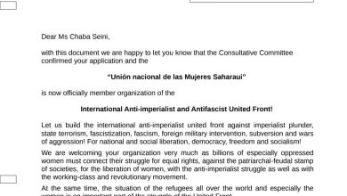 حصل الاتحاد الوطني للمرأة الصحراوية على العضوية الكاملة في هيئة الجبهة المتحدة لمناهضة الإمبريالية والفاشية، حسب ما ذكرته وكالة الأنباء…