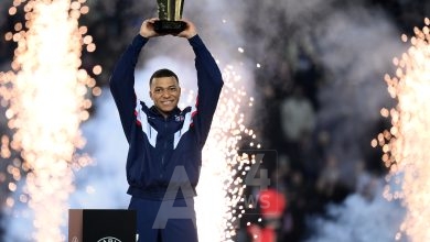 تسلم، كيليان مبابي، درع الهداف التاريخي لنادي باريس سان جيرمان برصيد 201 هدفاً، بعد مباراة نانت، السبت. وهز مبابي (24…
